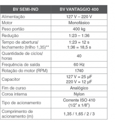 Descrição: • Central eletrônica Facile, com maior número de funções e fácil progamação; • Motor robusto com maior durabilidade;
